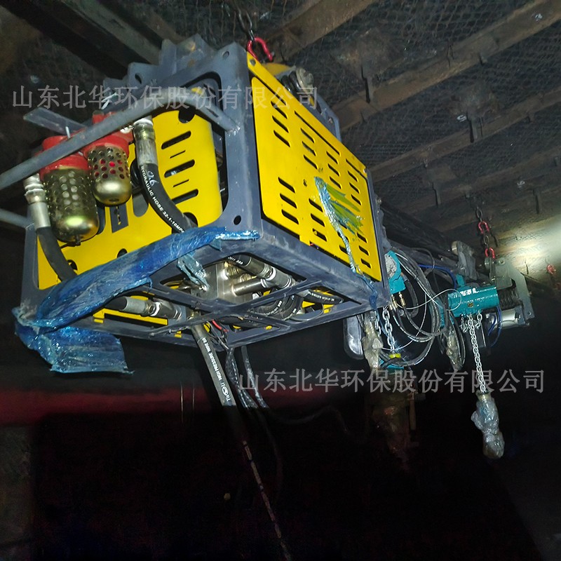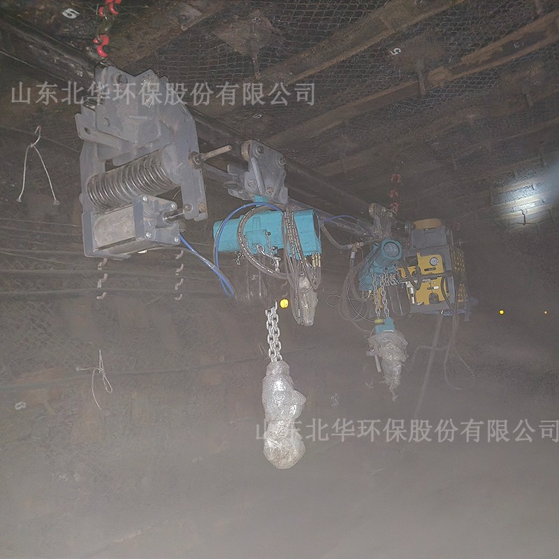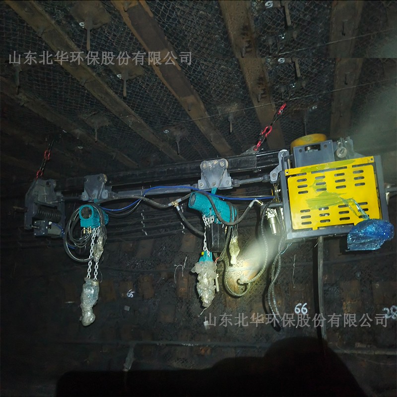 氣動(dòng)單軌吊車,主要用于煤礦井下巷道中材料、配件的運(yùn)輸,減輕工人勞動(dòng)強(qiáng)度。 氣動(dòng)單軌吊是利用懸空軌道,以氣動(dòng)馬達(dá)經(jīng)減速機(jī)構(gòu)減速后,帶動(dòng)膠輪沿軌道立板摩擦驅(qū)動(dòng)的設(shè)備。氣動(dòng)單軌吊配備氣動(dòng)驅(qū)動(dòng)裝置,將貨物懸吊在承載小車上,設(shè)備可沿巷道內(nèi)I140E型或其改型懸軌進(jìn)行沿巷道負(fù)重運(yùn)送材料、設(shè)備配件。設(shè)備的驅(qū)動(dòng)由兩個(gè)驅(qū)動(dòng)馬達(dá)實(shí)現(xiàn),停止供給高壓空氣時(shí)驅(qū)動(dòng)馬達(dá)隨即停止,同時(shí),自身配備的 兩套抱閘機(jī)構(gòu),即時(shí)抱閘剎車。每節(jié)軌道長(zhǎng)度為3米。兩端靠銷軸聯(lián)接而成,由吊掛組件與錨桿端頭螺紋 連接懸掛在巷道頂板上,或者由卡板、U型螺栓吊掛于工字鋼或U型棚上。該設(shè)備由操作手柄控制,操作手柄懸掛在管路上,控制緊壓在工字型懸軌 兩側(cè)的驅(qū)動(dòng)輪的行進(jìn),可以行進(jìn)、停止。設(shè)備中間配備2個(gè)承載裝置分別掛有氣動(dòng)起吊葫蘆,可以起吊重物,并隨跑車,將所運(yùn)物料送到指定位置。